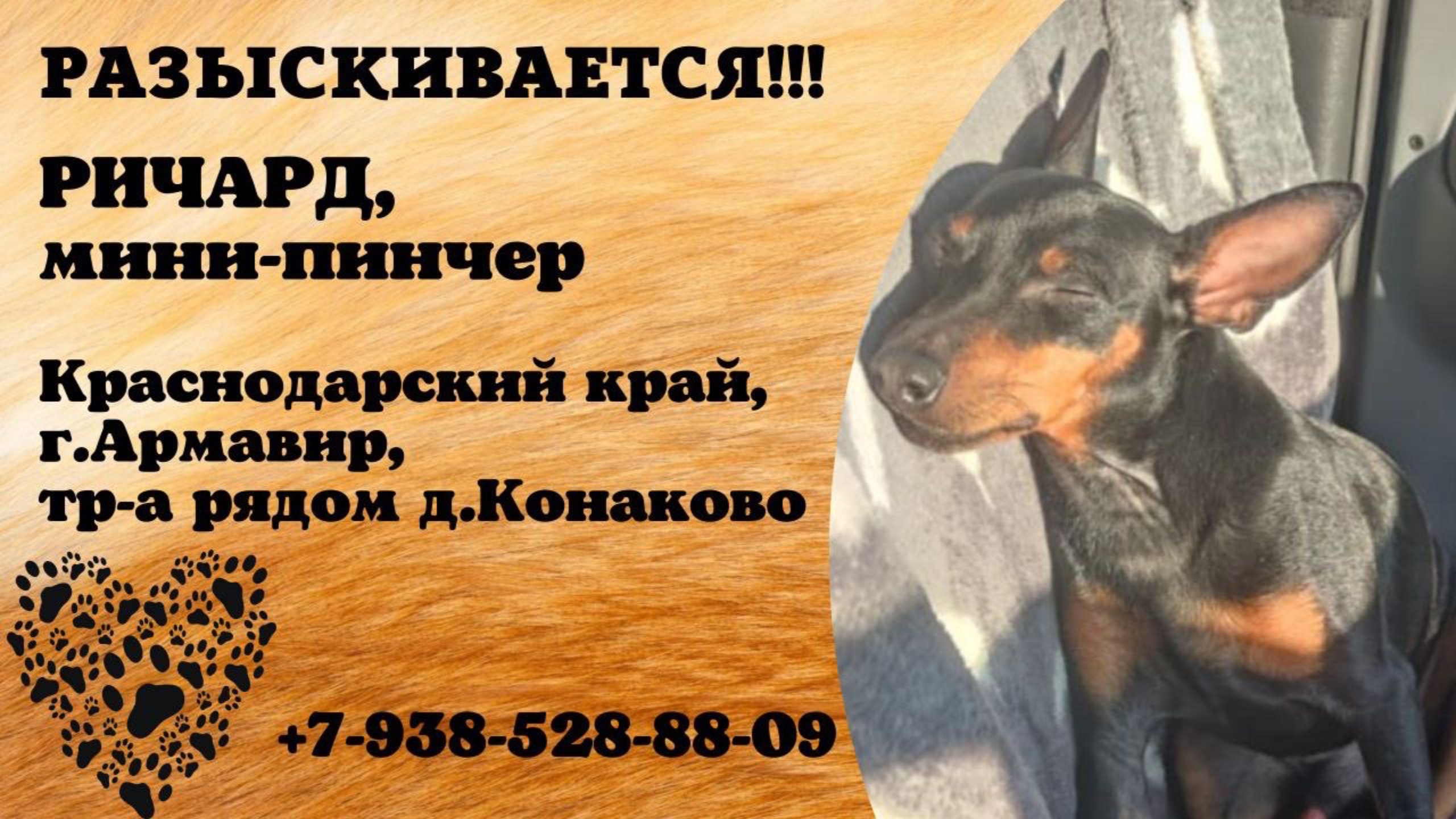 Краснодарский Армавир Пропала собака 24.09 Кобель Ричард, породы цвергпинчер (карликовый пинчер) Выбежал из авто на участке трассы Армавир-Успенское и пропал. Имя хозяина: Сергей Телефон: 79385288809 Инфо https://vk.com/wall-198815410_211879 #пропала_собака #краснодарский #армавир