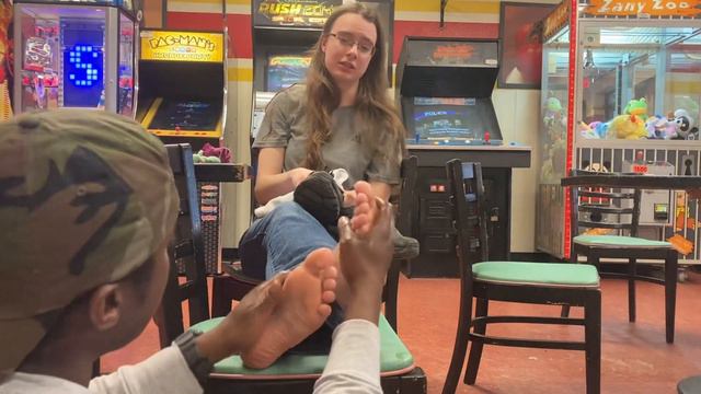 Foot massage in pizzas shop