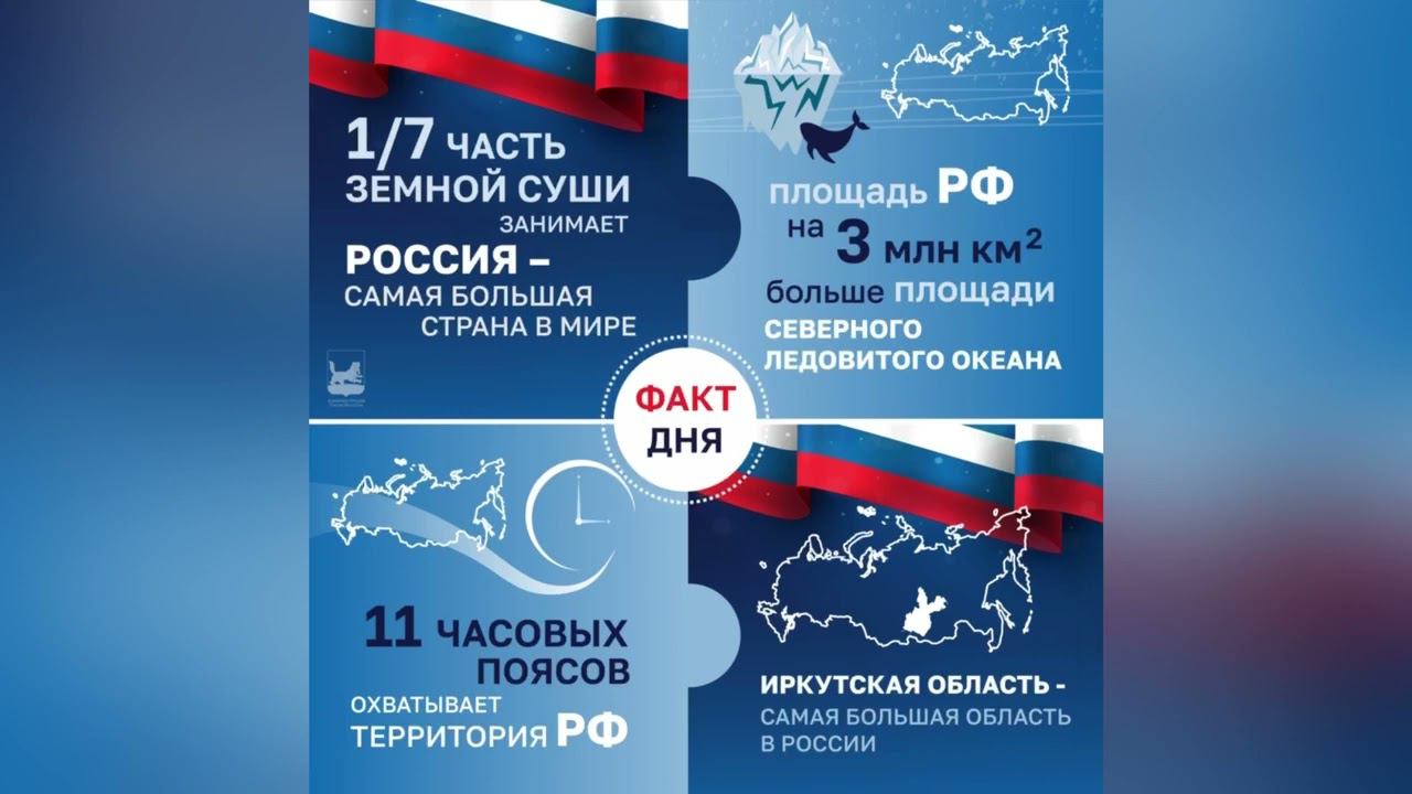 Приближается один из самых важных праздников – День России. В сегодняшнем #Фактдня_Иркутск мы собрали для вас несколько интересных цифр. Почувствуйте масштаб нашей необъятной Родины!
