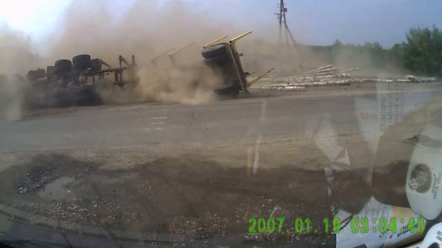 ДТП лесовоз на боку проехался