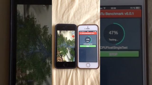 IPhone 5S в сравнении в Antutu. Слева iOS7, справа iOS8
