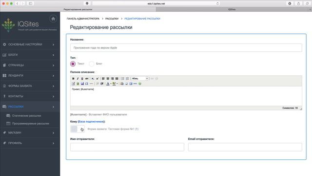 Урок по работе с Email рассылками в платформе IQSites.
