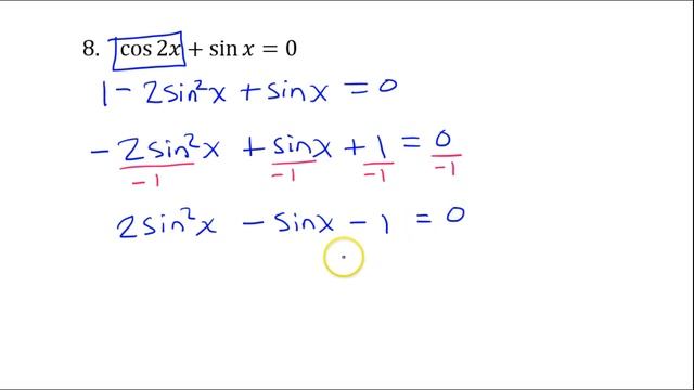Day 9 HW (6 to 10) Solving Trig Equations Using Double Angle Identities