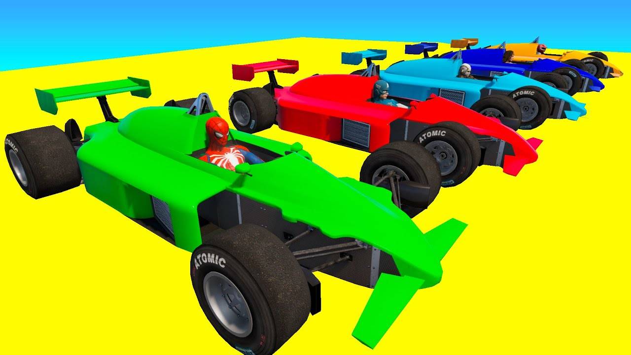 Гонки Формулы-1 в Стиле Человека-паука Челлендж Мега Рампа Гоночные Автомобили Супергероев
