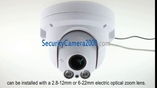 This video is for a PTZ dome camera IPA1555X at SC2000.com It can be installed with a 2.8-12mm or 6-22mm electric optical zoom lens. 330 degree horizontal rotation, 30 degrees / sec (+ 3--90 degree vertical rotation, 20 ° / sec.