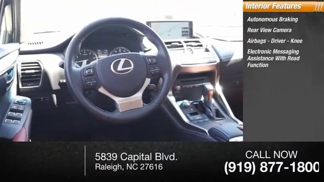 2018 Lexus NX 300 for sale in Raleigh NC - Stock # PL0642 https://www.johnsonlexusraleigh.com/certified/LEXUS/2018-LEXUS-NX+300-c164ec780a0e0adf78159ede75d7d988.htm Phone: 877-349-0727 Year: 2018 Engine: 2.0L I-4 cyl Transmission: 6-Speed Automatic Mileage: 14,171 miles MPG Range: 22/28 Exterior Color: Eminent White Pearl Interior Color: Rioja Red Address: 5839 Capital Blvd. Raleigh, NC 27616 VIN: JTJYARBZ4J2094354