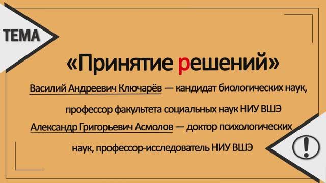 Наш эксперт, Трушинский Анатолий Игоревич https://vk.com/caivaan, изучает механизмы создания научных направлений. Применимо ли полученное знание? Каковы дальнейшие перспективы? Такие вопросы возникают во многих областях научной работы. Можно ли как-то оценить ключевые идеи в начале крупной теории? В данном видео герои рассказывают о теориях принятия решений. Главный герой видео — Василий Андреевич Ключарёв, российский нейробиолог и популяризатор науки, специалист по нейроэкономике. Кандидат биологических наук, профессор факультета социальных наук НИУ ВШЭ. Его дополняет Александр Григорьевич Асмолов — советский и российский психолог, политик, публицист; профессор-исследователь НИУ ВШЭ, доктор психологических наук. Напоминаем, что Ваш навык критического разбора и анализа информации растет только от письменного прорешивания задач. Оставляйте Ваши комментарии под этим постом в нашей группе Вконтакте https://vk.com/tema_rema Используемые ссылки: Становление теории принятия решения – обзор В.А. Канке: https://vikent.ru/enc/5746/ Системный подход в психологии по М.И. Веллеру: https://vikent.ru/enc/3964/ Дополнительные материалы: Критерии оценки гипотез / теорий в интерпретации А.С. Кармина: https://vikent.ru/enc/5965/ Почему люди не всегда и не везде демонстрируют высшие стадии мышления? - по оценке Жана Пиаже: https://vikent.ru/enc/7350/ Разработка методик творчества по Г.С. Альтшуллеру: https://vikent.ru/enc/462/ Создание нового научного направления / концепции и простое оборудование по Г.С. Альтшуллеру: https://vikent.ru/enc/644/ Чижевский Александр Леонидович https://vikent.ru/author/1040/ Источники видео: Ловушки мышления или как мы принимаем решения? https://youtu.be/isSkeq6o9Gc?t=2300 Как остаться человеком в бесчеловечном мире / Нам надо поговорить с Александром Асмоловым https://youtu.be/8Rc6y3SYNSs?t=2195 Источник фото: В.А. Канке https://clck.ru/dwZBA М.И. Веллер http://mweller.ru/fotoalbom/ #видеозадача #рема #принятие_решений #маркетинг #нейронауки #системные_уровни