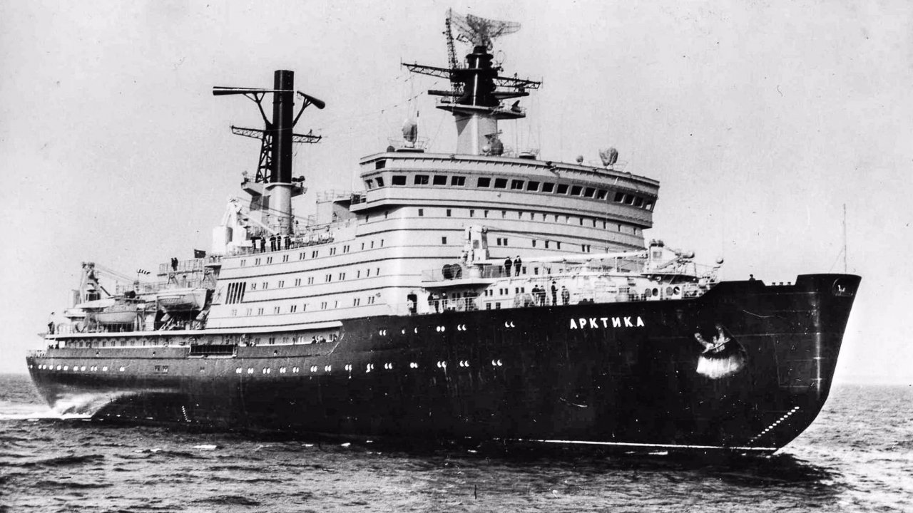 Советский атомный ледокол «Арктика» впервые в истории мореплавания достиг Северного полюса