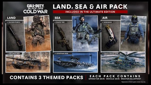 In todays video im going to be talking about the cod black ops cold war land sea and air pack. The black ops cold war land sea and air pack is part of the ultimate edition of cod black ops cold war. the land sea air pack in bocw has different operator outfits and weapon skins. In the video ill show you images of the bocw land sea and air pack, tell me in the comments how you feel about them. Also let me know you feel about call of duty black ops cold war. #BlackOpsColdWar #BOCW #COD #CODBOCW Intro: (0:00) Land, Sea, & Air Pack Showcase: (0:31) Outro: (6:09) YO! my name is Yogge. I make daily gaming videos. Thank you for watching my video ?. If you enjoyed then make sure you "SUBSCRIBE" and hit the "BELL" this way you will be notified every time I upload. Thanks - Enjoy the Video! :) Outro: Prev Video: https://www.youtube.com/watch?v=0rwJ_w5kVGI&t=1s Random Video: https://www.youtube.com/watch?v=mksFbPlp-Ls&t=54s Links: Twitter is here : https://twitter.com/TheYogge Facebook is here : https://www.facebook.com/profile.php?... Instagram is here : https://www.instagram.com/itzyogge/?h... Please Subscribe here : https://www.youtube.com/Yogge