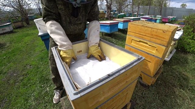 СМОТРИМ ПЧЕЛОСЕМЬИ В УЛЬЯХ ППУ И ПОДСТАВЛЯЕМ РАМКИ НА РАСШИРЕНИЕ ГНЕЗДА..mp4