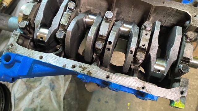 Вложил коленвал в блок.Собрал поршни с шатунами.