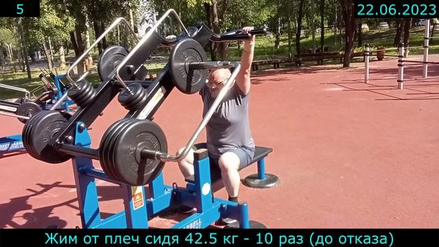 22.06.2023 - Жим от плеч сидя 42.5 кг - 10 раз (до отказа)