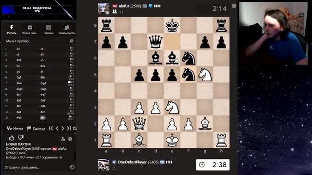 Друзья, всем привет. Мои 12 партий с мастерами. Честная игра на контрасте в интернете. Шахматы. Блиц 3+0 на chess.com. Если интересно, - подписывайтесь на канал, ставьте лайки, оставляйте комментарии. Поддержка через: DonationAlerts: https://www.donationalerts.com/r/onedebutplayer Бусти: https://boosty.to/onedebutplayer/donate Donatepay: https://new.donatepay.ru/@1272445 Или на карту в телеграм-канале: https://t.me/onedebutplayer/3
