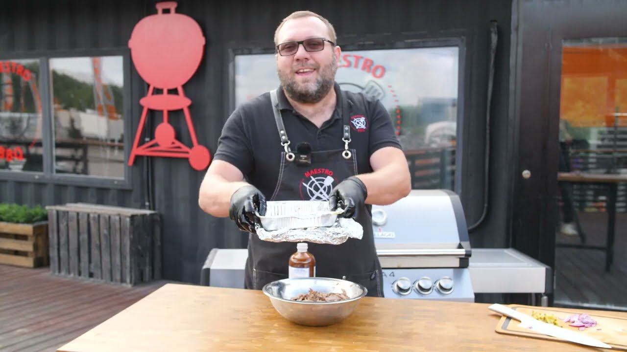 Рваная свинина на газовом гриле