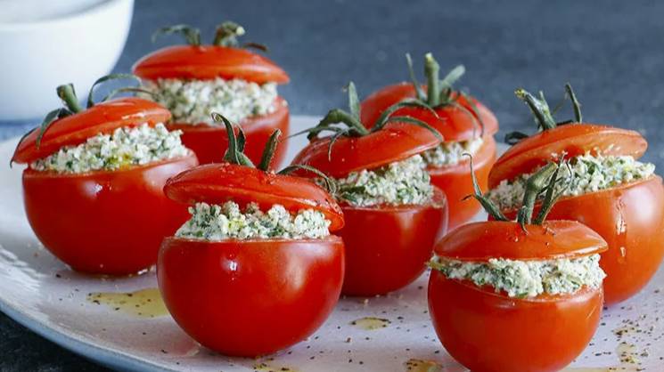 Помидоры с творогом и чесноком.