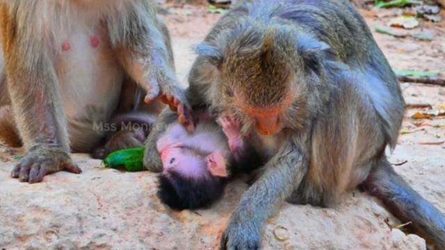 Воспитание и уход за младенцами у азиатских макак.