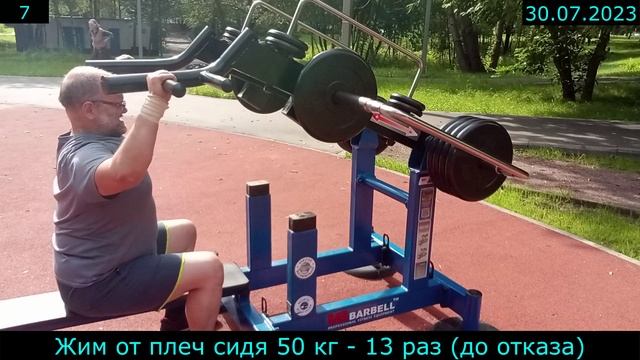 30.07.2023 - Жим от плеч сидя 50 кг - 13 раз (до отказа)