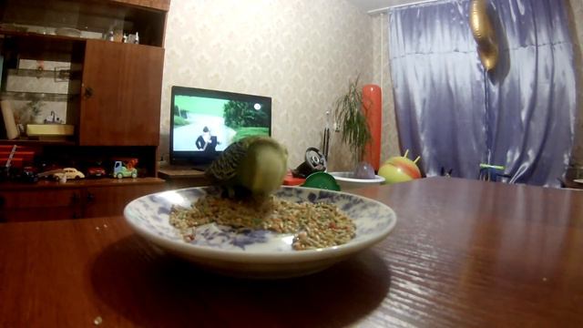 волнистый попугай Сёма кушает