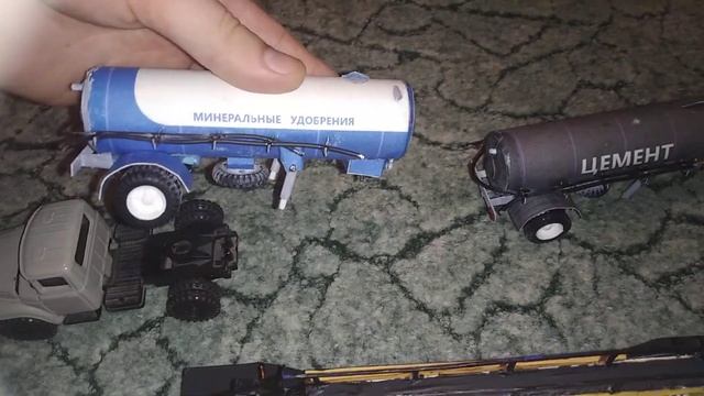 Решил поверить в себя и распечатав из интернета модели из бумаги, сначала вырезал, потом склеил, добавил пластиковые элементы и колеса. Не могу сказать, что модели получились идеальными, но если немного загрязнить, то будет нормально. Полуприцеп НАМИ 790 панелевоз. Полуприцеп ТЦ4 цемент. Полуприцеп ТЦ4 минеральные удобрения.