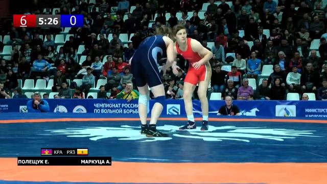 ЧР по вольной борьбе среди женщин. Полещук Е. (КРА) - Маркуца А. (РЯЗ) - 1/4 Финала, 53кг