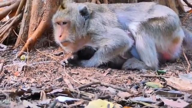 Опытная макака сразу задаёт новорождённому детёнышу... 1000039612.mp4