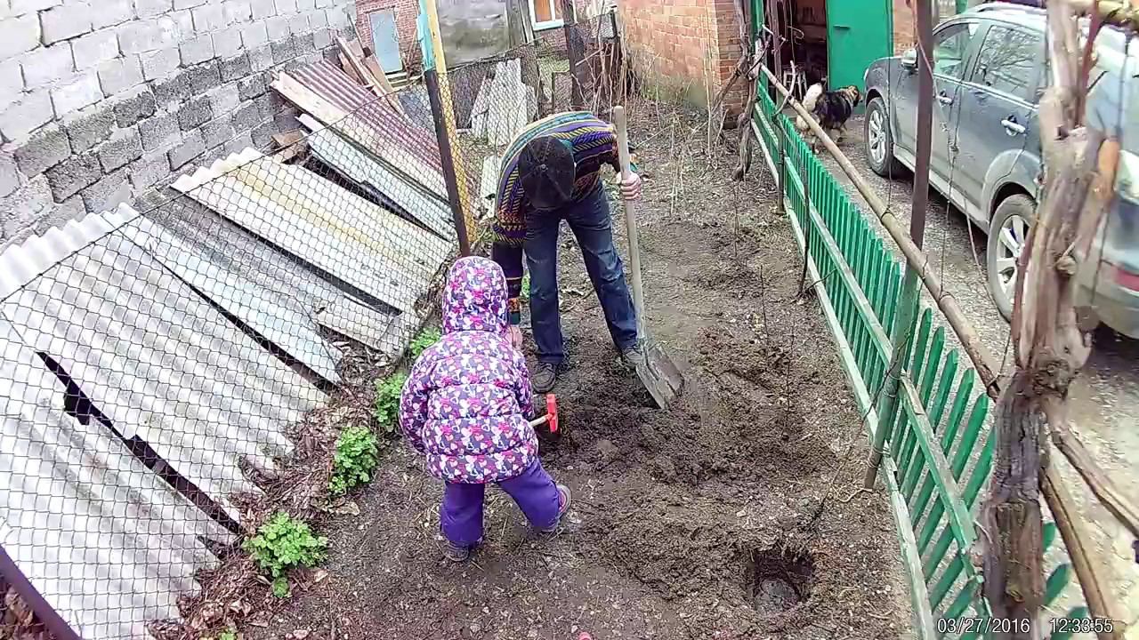 Маша с дедушкой сажают малину