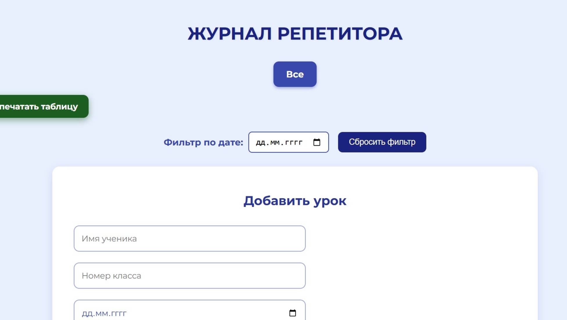 Журнал репетитора HTML