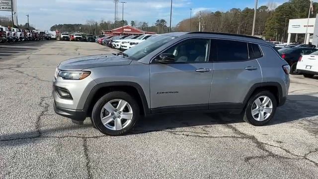 Billet Silver Metallic Clearcoat Used 2022 Jeep Compass Latitude available in 2280 Bankhead Hwy, Carroliton, Georgia at Scott Evans CDJR. Servicing the Carroliton, Bowdon, Roopville, Whiteburg, Mt. Zion, GA area. USED: https://www.scottevanschryslerdodgejeep.com/used-vehicles/?utm_source=youtube&utm_medium=referral&utm_campaign=LESA_Vehicle_video_from_youtube NEW: https://www.scottevanschryslerdodgejeep.com/new-vehicles/?utm_source=youtube&utm_medium=referral&utm_campaign=LESA_Vehicle_video_from_youtube 2022 Jeep Compass Latitude - Stock#: P5773 http://www.scottevanschryslerdodgejeep.com For more information on this vehicle and our full inventory, call us at 470-486-7788 Scott Evans CDJR 2280 Bankhead Hwy Carrollton GA 30116 CARFAX One-Owner.CARFAX 1 OWNER / NO ACCIDENTS ----- APPLE CARPLAY ANDROID AUTO 17 x 7 Painted Aluminum Wheels 4-Wheel Disc Brakes 6 Speakers ABS brakes Air Conditioning Alloy wheels AM/FM radio: SiriusXM Anti-whiplash front head restraints Apple CarPlay/Android Auto Auto High-beam Headlights Brake assist Bumpers: body-color Compass Driver door bin Driver vanity mirror Dual front impact airbags Electronic Stability Control Four wheel independent suspension Front Bucket Seats Front Center Armrest w/Storage Front reading lights Heated door mirrors Illuminated entry Knee airbag Leather Shift Knob Low tire pressure warning Outside temperature display Overhead airbag Overhead console Panic alarm ParkView Rear Back-Up Camera Passenger door bin Passenger vanity mirror Power door mirrors Power steering Power windows Premium Cloth/Vinyl Bucket Seats Quick Order Package 28J Radio: Uconnect 5 w/10.1 Display Rear anti-roll bar Rear seat center armrest Rear window defroster Rear window wiper Remote keyless entry Roof rack: rails only Speed control Split folding rear seat Spoiler Steering wheel mounted audio controls Tachometer Telescoping steering wheel Tilt steering wheel Traction control Trip computer Variably intermittent wipers.Sales tax title and tags not included in vehicle prices shown and must be paid by the purchaser. Pre-Owned vehicle pricing includes all offers and incentives. *Financing must be provided by a third-party lender using this dealerships assistance for customer to receive finance special price. See dealer for complete details. Additional $1500 fee will be applied for cash purchases or outside financing. While great effort is made to ensure the accuracy of the information on this site errors do occur so please verify information with a customer service rep. This is easily done by calling us at 770-834-5050 or by visiting us at the dealership. ENGINE: 2.4L I4 ZERO EVAP M-AIR W/ESS (STD),QUICK ORDER PACKAGE 28J -inc: Engine: 2.4L I4 Zero Evap M-Air w/ESS Transmission: 6-Speed Aisin F21-250 Gen 3 Auto,TRANSMISSION: 6-SPEED AISIN F21-250 GEN 3 AUTO (STD),BILLET SILVER METALLIC CLEARCOAT,RADIO: UCONNECT 5 W/8.4 DISPLAY,BLACK PREMIUM CLOTH/VINYL BUCKET SEATS,Front Wheel Drive,Power Steering,ABS,4-Wheel Disc Brakes,Brake Assist,Aluminum Wheels,Tires - Front All-Season,Tires - Rear All-Season,Heated Mirrors,Power Mirror(s),Rear Defrost,Privacy Glass,Intermittent Wipers,Variable Speed Intermittent Wipers,Rear Spoiler,Power Door Locks,Daytime Running Lights,Automatic Headlights,LED Headlights,Fog Lamps,Automatic Highbeams,AM/FM Stereo,Satellite Radio,MP3 Player,Auxiliary Audio Input,Requires Subscription,MP3 Player,Steering Wheel Audio Controls,Auxiliary Audio Input,Bluetooth Connection,Pass-Through Rear Seat,Rear Bench Seat,Adjustable Steering Wheel,Trip Computer,Power Windows,Leather Steering Wheel,Keyless Entry,Power Door Locks,Keyless Entry,Power Door Locks,Keyless Start,Cruise Control,A/C,Cloth Seats,Vinyl Seats,Bucket Seats,Driver Vanity Mirror,Passenger Vanity Mirror,Driver Illuminated Vanity Mirror,Passenger Illuminated Visor Mirror,Floor Mats,Smart Device Integration,Remote Engine Start,Requires Subscription,Power Windows,Power Door Locks,Trip Computer,Immobilizer,Traction Control,Stability Control,Traction Control,Front Side Air Bag,Blind Spot Monitor,Cross-Traffic Alert,Lane Departure Warning,Lane Keeping Assist,Lane Departure Warning,Front Collision Mitigation,Telematics,Requires Subscription,Tire Pressure Monitor,Driver Air Bag,Passenger Air Bag,Front Head Air Bag,Rear Head Air Bag,Passenger Air Bag Sensor,Knee Air Bag,Child Safety Locks,Back-Up Camera