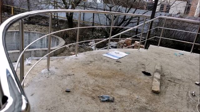 Навес из поликарбоната диагональный. Ограждения из нержавейки