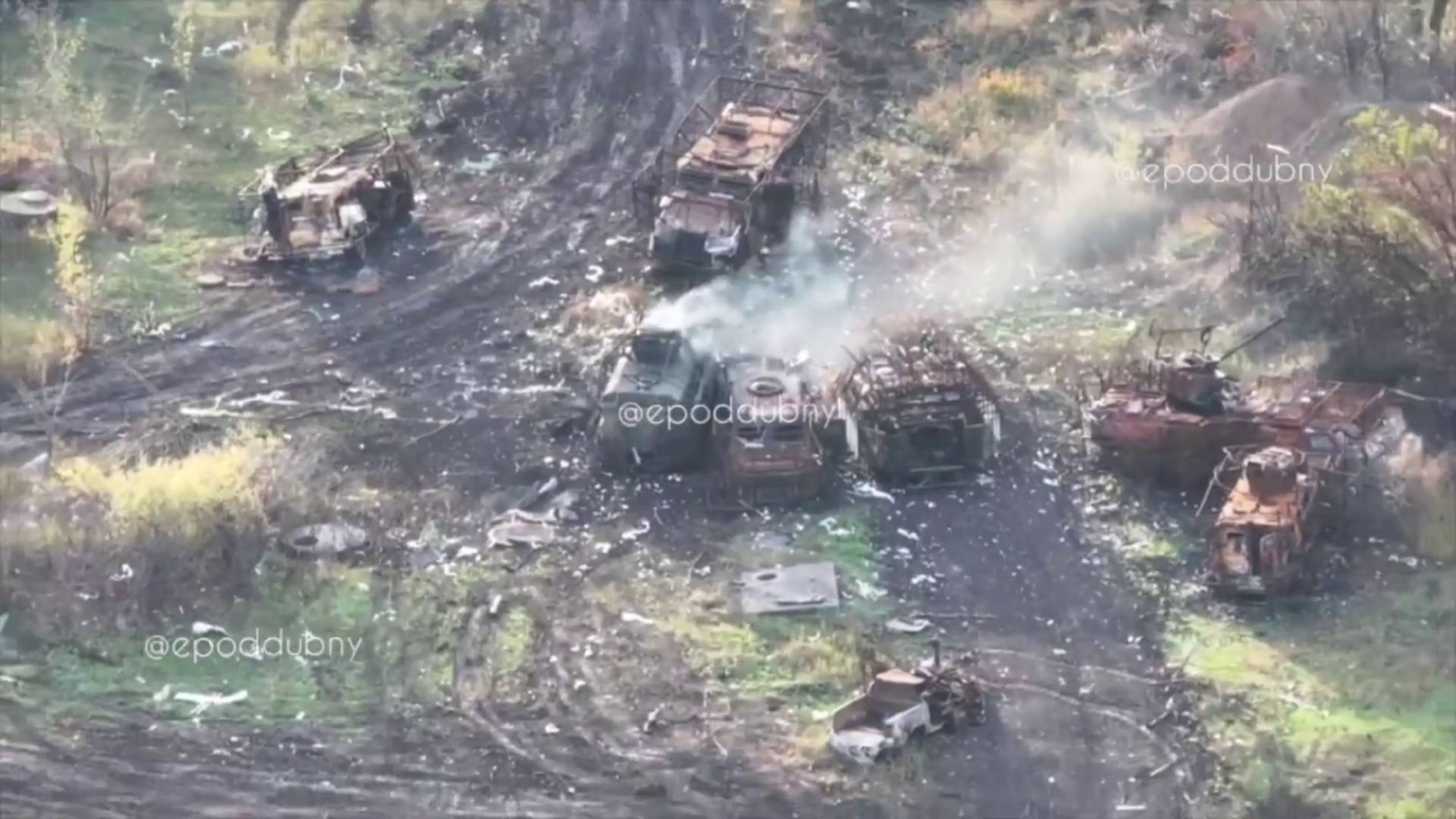Дорога Покровск-Мирноград. Куча горелой ВСУшной брони (октябрь 2025 г.)