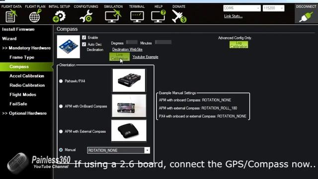 Consider supporting the channel by visiting www.patreon.com/painless360 See my playlist for all the videos in the series - https://www.youtube.com/playlist?list=PLYsWjANuAm4oswLMu9OU8yOm-9J6y30XW In this first video of the APM 2.5/2.6 series I show how to take the new board from 'out of the packet' to having the board connected to the radio receiver, configured and setup ready for installation into the frame of the model. http://ardupilot.org/ To die. The latest place to download Mission Planner Google ‘mission planner download’ The latest firmware version supported on the APM 2.x boards is V3.2.1. When loading the firmware choose the option in the lower right hand of the screen to select 'Pick Previous Firmware' to load V3.2.1 of the code. In this video we cover -- • What you'll need • Selecting and installing the firmware • Calibration of the magnetometer and accelerometers • Connection to the radio receiver • Calibration of the RC channels • Selection of the flight modes In the next video I will show how to connect the board into the model and test motor connection. Thanks for watching, please like the video and subscribe! Happy flying.