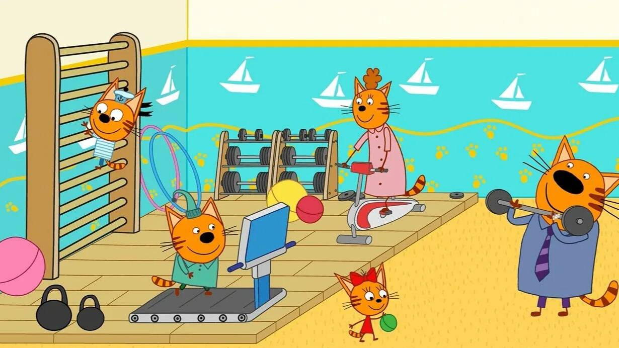 Три Кота! Ходим Всей Семьей В Спортзал! Три Кота Игра Как Мультик!