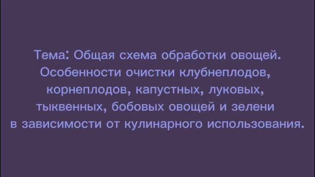 651, МДК 01.01, 03.12.25 - Общая схема обработки овощей