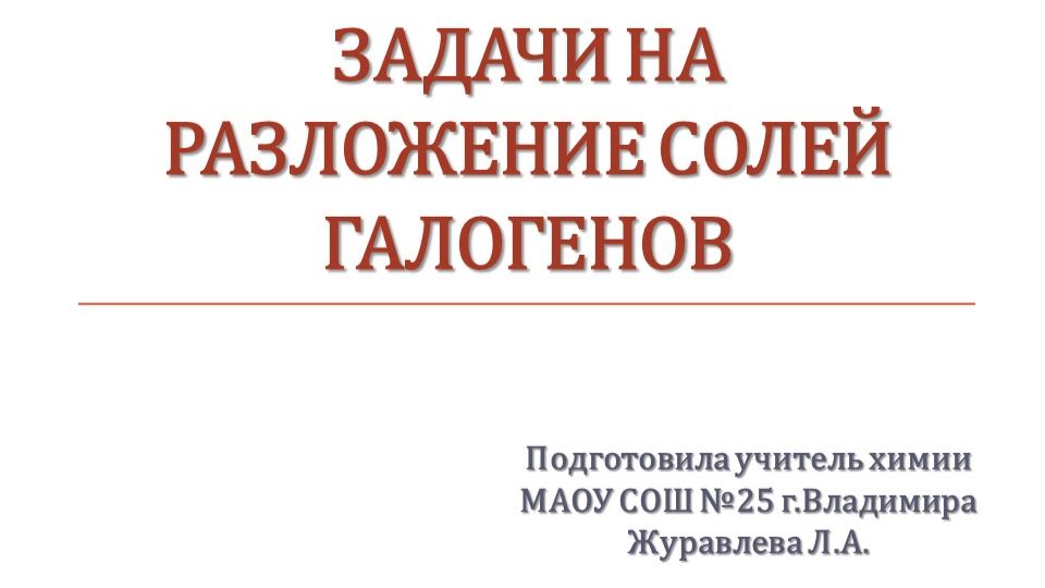 Подготовка к ГИА по химии. Решение задач на разложение солей галогенов