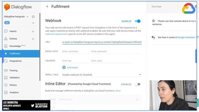 A talk by Anu and Lee about building chats for Google Hangouts with Dialogflow and the Sheets API