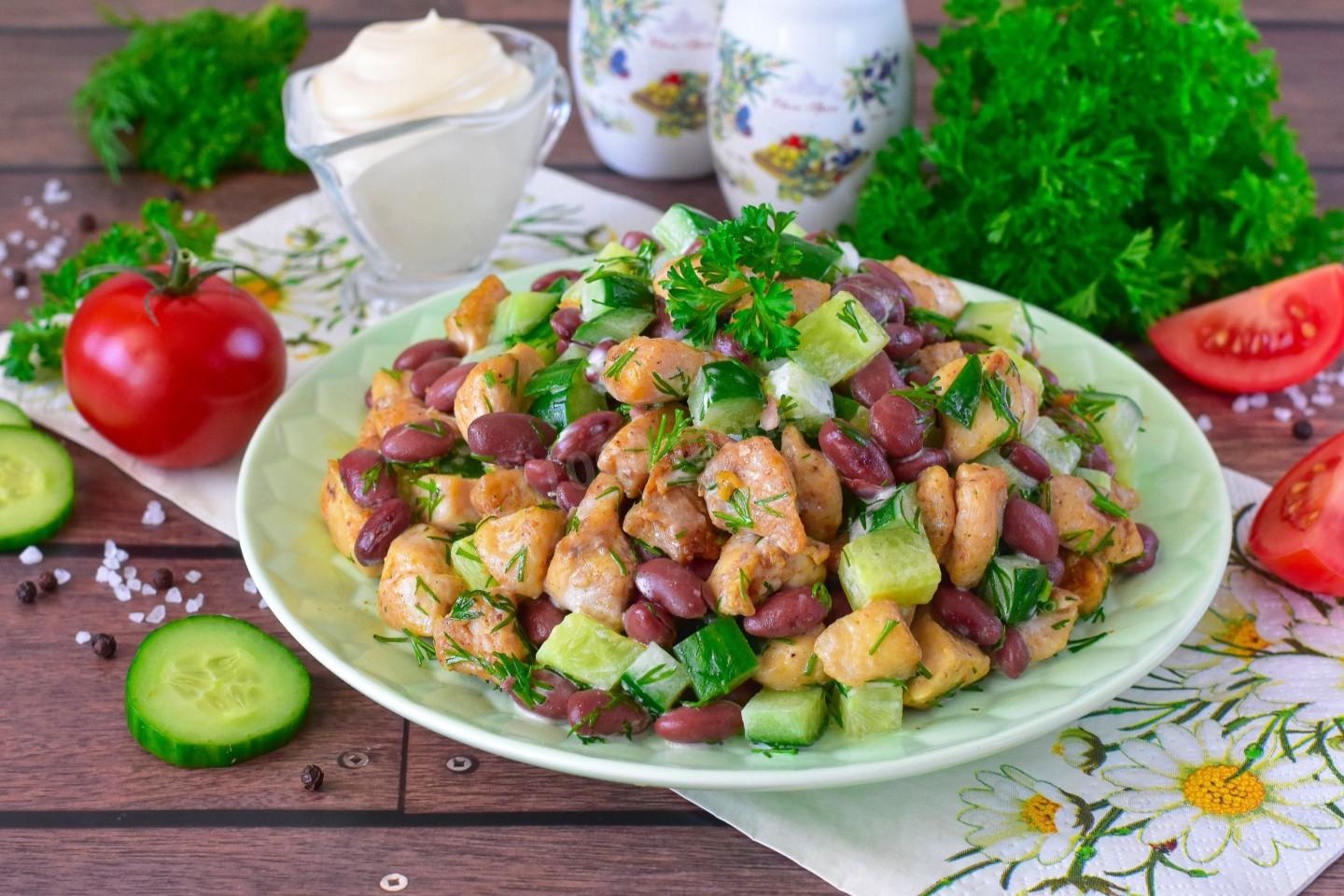 КАК ПРИГОТОВИТЬ САЛАТ С КУРИЦЕЙ, ФАСОЛЬЮ И ОГУРЦАМИ