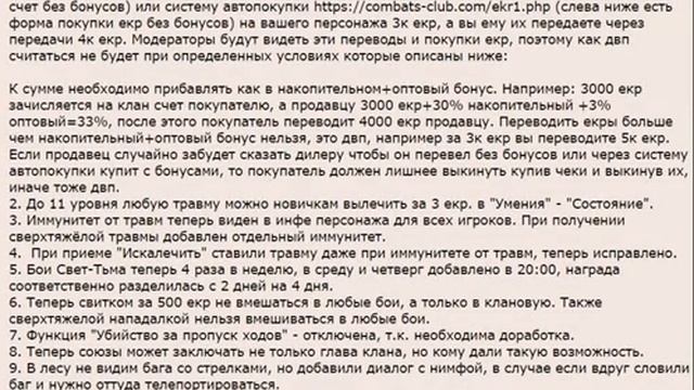 «Официальный Бойцовский Клуб» - https://Combats-Club.Com – это увлекательная онлайн игра (БК-2 времен 2004-2009), в которой сконцентрировано все самое лучшее от современных онлайн игр. В этой браузерной игре (oldbk) заложены самые интересные традиции всем известной онлайн игры под названием «combats-club.com 2004-2009», которая, кстати, стала первооткрывателем всех браузерных игр. В эту браузерную игру (олдбк) вошли предыдущие стратегии и прибавились новые технические разработки, которые сделали эту mmorpg top игру еще более увлекательной! В игре Старый Бойцовский клуб вы можете выбрать одну из противоборствующих сторон, Свет и Тьма. Каждая из них имеет свои особенности, плюсы и минусы, и во многом определяет ваш игровой процесс. Для любителей «пофармить» ценные вещи (уникальные предметы, свитки чарования и руны усиления) открыты так называемые подземелья городов Angels, Emerald, Sand, Sun, Capital city и т.д. За порядком как и всегда пристально следят сотрудники Ордена Паладинов. Игра «combats-club.com» всегда рада «новым старым» игрокам БК 2, желает Вам приятной игры и громких побед! Также не забудьте подписаться на группу игры в вк: https://vk.com/combats_club_com ? Наши преимущества: — После регистрации персонажа в инвентаре Вы найдёте полезные подарки и чеки на 1000 екр. — Опыт за победу 300% по будням и 350% по выходным. — Цена за 1 ЕКР снижена до 1,5 руб.! (Это очень дешево при наших ценах на арты и екр-вещи). А также автоматич. бонусы к покупке ЕКР до 40%! (Зависит от количества купленных ЕКР). — Вы можете зарабатывать от 500 екр. до 2000 екр. в месяц (что в нашей игре считается не малыми средствами при наших расценках). — Бонус за онлайн - каждый час можно получать кредиты или екры и Золотые монетки (используются для покупки Капюшона в Казначействе, на Торговой улице). — 8 пещер. ПТП, Мглы, Катакомбы, Гора легиона, Потерянный Вход, Туманные Низины, Бездна и Грибница. — Хорошее выпадение дропа в пещерах. — Боты на ЦП 2 раза в день в 12, 19 и 21 по МСК появляются за победу выдаются екры и опыт. — Достижения (кредиты и екры даются). — Черепа выпадают в боях используются для покупки Лото билетов (интересные призы). — Плавка рун в Храме Знаний как для продажи так и для собственных нужд. — Ежедневные задания на 7 дней в неделю, за которые даются екры и призы. — В хаотах даются за победу екры и опыт, а в призовых екры х2, призовая монета и опыт. — Турнирные бои, за победу в которых даются екры, опыт и жетон. — В Башне смерти можно найти екровые чеки, а также при победе получить кредиты. — Также можно зарабатывать с помощью Пещер и Торговли. — Мы в Топ-5 поисковика Google и в Топ-3 поисковика Yandex по нашей тематике, а также включены и другие виды рекламы что позволяет всегда поддерживать стабильно повышающийся онлайн. — Выгодная Реферальная система, больше чем у кого-либо. Зовите друзей! — Уникальная боевая система. Отличный баланс между разными классами воинов и магов. — Начало игры с 7-го уровня, чтобы сразу играть в хаотичных или групповых боях. — А если хочется быстро получить определенное количество ЕКР, то всегда можно купить за реальные деньги, с помощью кнопки Покупка ЕКР и Услуг или Дилера - DarliBank.