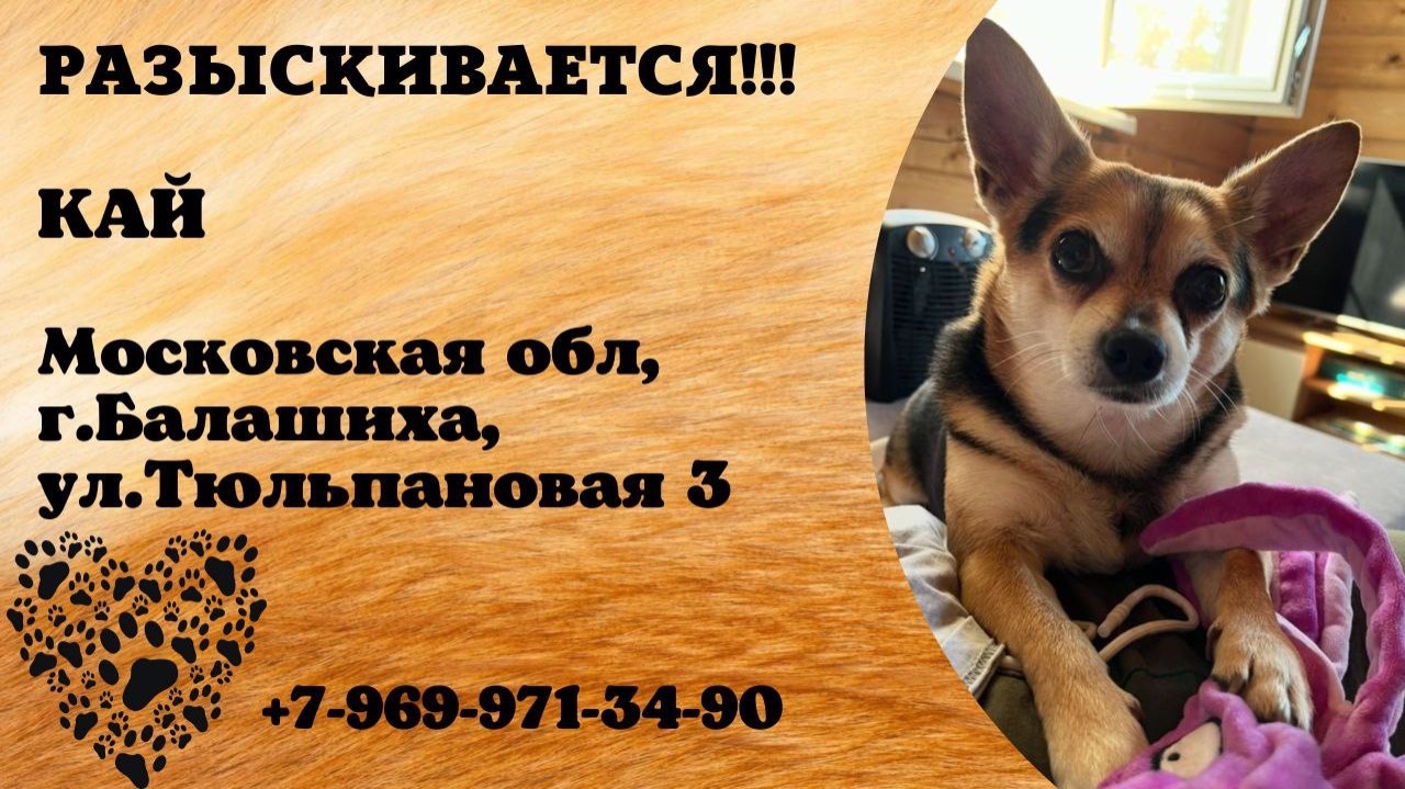 Московская Балашиха Пропала собака Пропала собака(кобель) откликается на кличку «Кай» пропал 26.11.2025 примерно в 7:00 Приметы: золотистое пузо,чёрная спина,похож на большого чихуахуа,стоячие ушки длинные, на голове немного седой.У собаки особое питание в связи с проблемами с пищеварением,астма Если вдруг увидите просьба сообщить по телефону: 8 969 971 34 90 Елизавета деревня Чёрное Балашиха улица Тюльпановая 3 ГАРАНТИРУЮ ВОЗНАГРАЖДЕНИЕ НАШЕДШЕМУ Инфо https://vk.com/wall-198815410_214779 #пропала_собака #московская #балашиха