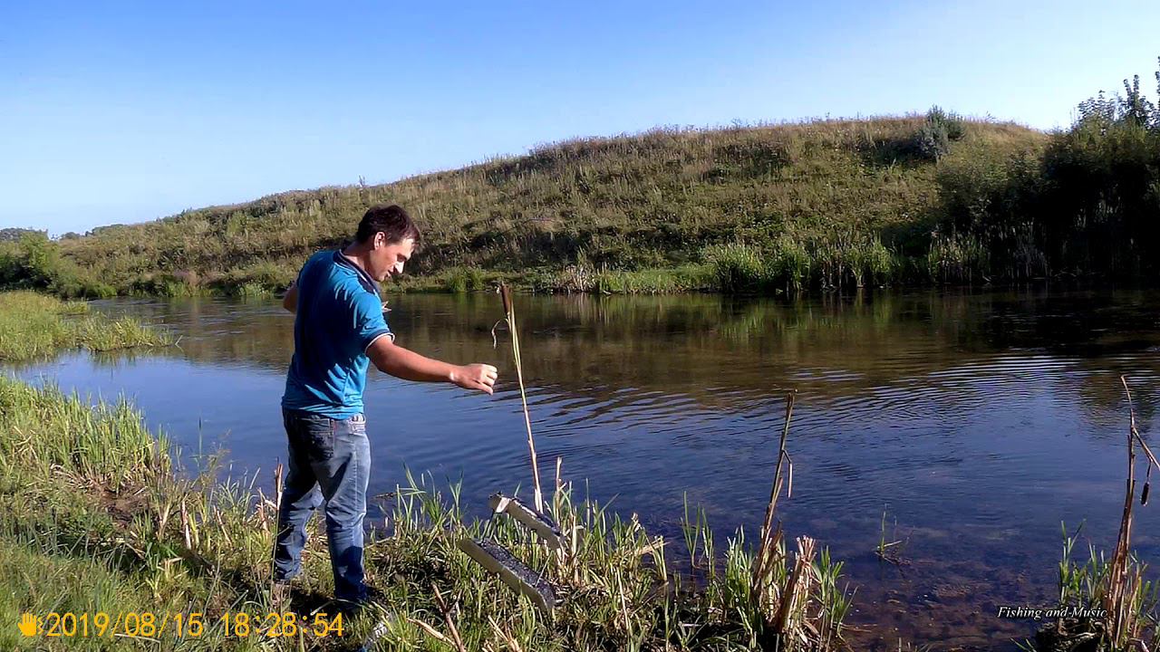 Рыбалка на рыболовный кораблик (санки) на малой реке на кузнечика.