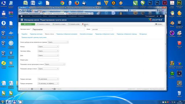 Настройка меню сайта построенного на движке Joomla 3