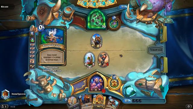 Играем в Hearthstone коллекционную карточную онлайн-игру по мотивам вселенной Warcraft проходим рейтинг. Доходим по таблице текущего сезона до 5го алмаза и дальше продвигаемся по рейтингу, Играем на ВОИНЕ НА ИССТУПЛЕНИИ против ОХОТНИКА НА ДЕМОНОВ. Выводим темп, чекаем оружие, спускаем комбо с исступлением, получаем броню, давим числом и контролируем стол.