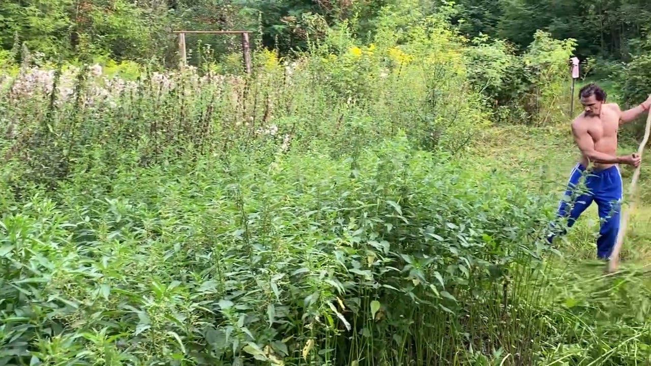 Рафаэль Замвнов косит траву.