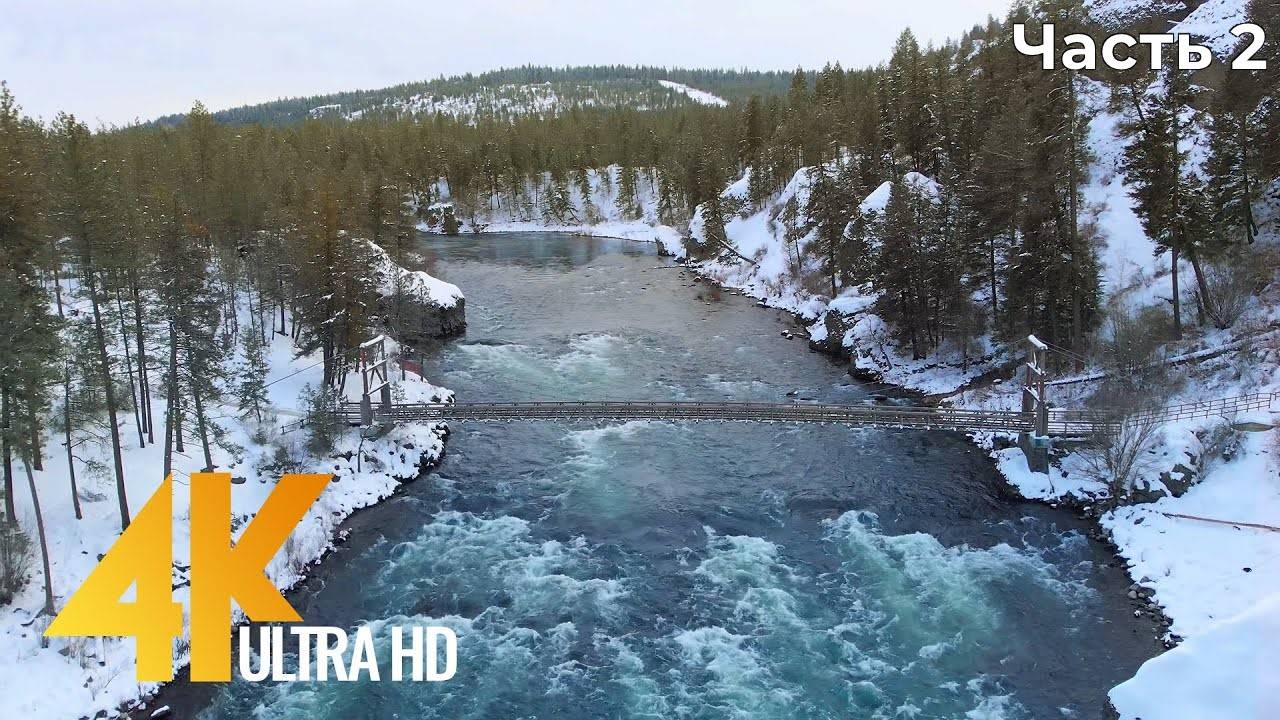 Запись с беспилотника в формате 4K. Вид с высоты птичьего полёта на заснеженную Восточную часть Вашингтона. Продолжительность: 4 часа. Часть 2.