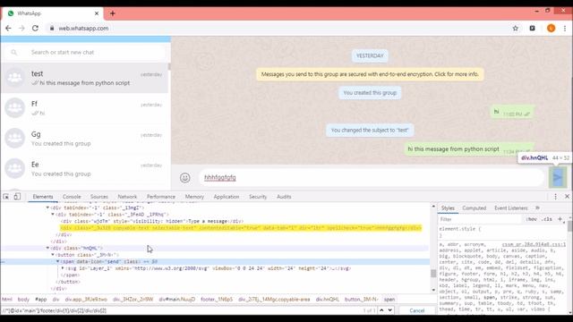 #CodeOfClans Send Whatsapp Message Using Python Script In this video i am going to show how you can send Whatsapp message using python script (With Selenium Library). *** Other Videos *** How to Install Eclipse IDE and PyDev Plugin | Run Python Project in Eclipse IDE https://youtu.be/vJu0QMPFbWY How To Download and Install PyCharm IDE On Windows 7,8,10 | Create Python Project - Run Programs https://youtu.be/4aywrs3XdOE How to Download and Install Java JDK on windows 7,8,10 | Set JAVA_HOME path https://youtu.be/aeps_nVwgCM How To Download Python and Install Python On Windows 7, 8, 10| Hindi https://youtu.be/yX7SmMwZ-u0 What is python, python introduction, python features | Hindi https://youtu.be/1pupRuR7X4U *** Don't Forget To Subscribe My Channel #CodeOfClans ***