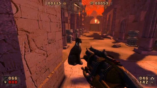 Just because you *can* get somewhere with the funky jump physics doesn't mean you have a reason to. The card for this level is Soul Catcher, another returning card from Painkiller which lets you collect souls from further way. Very useful. Not actually available for use at this time, but still.