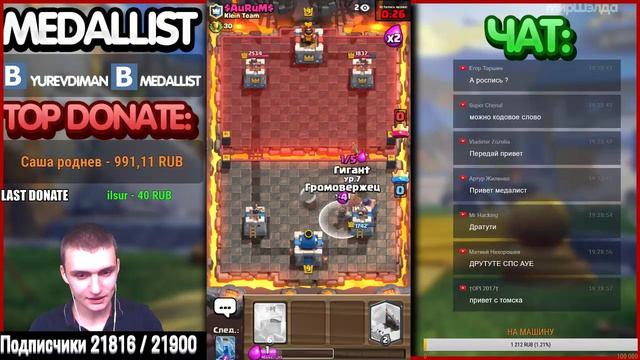 Донат : (🔊озвучка от 10рублей) http://www.donationalerts.ru/r/medallist СПОНСОР : https://www.youtube.com/channel/UCvU1vT7RL0-W-GvPSLuXfgA ➡️УСЛОВИЯ ТУТ!!! https://vk.com/medallist ДОП УСЛОВИЕ(ПОДПИСАТЬСЯ НА MeDallisTa в VK https://vk.com/yurevdiman) ЧТОБЫ ДАТЬ АККАУНТ НА ОТКРЫТИЕ НАДО: 1)СКИНУТЬ В ЛС https://vk.com/yurevdiman (ЛОГИН ПАРОЛЬ СКРИН СУНДУКА) 2)Запомнить что на СПЕЦ предложения не доначу 3)Написать какой у вас сундук(именно по этим код словам я буду искать вас в личке!) Ps Писать сундуки вот так! Магический ,Супер магический ,Легендарный,Клановый или пишите прочее я вас тоже найду Страница VK https://vk.com/yurevdiman По поводу предложений и рекламы: yurev.reklama@mail.ru 📢 📢 📢 РАССКАЖИ ДРУЗЬЯМ О СТРИМАХ 📢 📢 📢