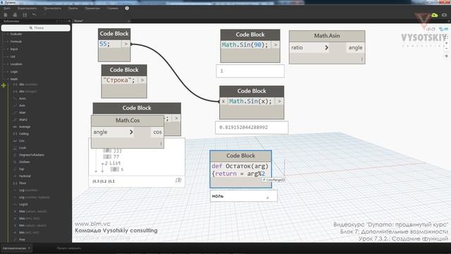 Понятие функции. Создание функций на Design Script. Возможность применения созданной функции во всём текущем скрипте Dynamo. Ноды: Code Block Урок из видеокурса «Dynamo: Продвинутый уровень». Средний. Дополнительные материалы доступны на портале: https://bim.vc/edu/courses/dynamo-prodvinutyy-uroven/ Автор курса: Сергей Кривой — Ведущий системный аналитик | ПИК Digital | Автор Полный список бесплатных видеокурсов: https://bim.vc/edu/courses/ Другие популярные бесплатные курсы: Autodesk Revit Архитектура: https://bim.vc/edu/courses/autodesk-revit-arkhitektura-prodvinutyy-uroven/ Autodesk BIM 360: https://bim.vc/edu/courses/autodesk-bim-360-prodvinutyy-kurs/ Autodesk Revit Семейства: https://bim.vc/edu/courses/autodesk-revit-semeystva-prodvinutyy-uroven/ Autodesk Revit Электрика Продвинутый: https://bim.vc/edu/courses/autodesk-revit-elektrika-prodvinutyy-uroven/ Autodesk Revit ОВ/ВК: https://bim.vc/edu/courses/autodesk-revit-mep-prodvinutyy-uroven/ Dynamo: https://bim.vc/edu/courses/dynamo-prodvinutyy-uroven/ BIM-менеджмент: https://bim.vc/edu/courses/bim-menedzher-administrirovanie-i-sovmestnaya-rabota/ Autodesk Navisworks: https://bim.vc/edu/courses/autodesk-navisworks-bazovyy-uroven/ Подпишитесь на новости, чтобы сразу узнавать о новых материалах: https://vk.com/bimvc https://www.facebook.com/bimvc/ https://t.me/bimvc/ О компании: Vysotskiy consulting с 2012 развивает BIM-кадры: Для частных лиц мы публикуем бесплатные курсы, тесты и формируем открытые профили на bim.vc. По ним вы можете получить новые знания, подтвердить их в экзаменах, сформировать открытый профиль и найти работу мечты. Компании могут оценить знания сотрудников и соискателей в удобной и наглядной среде — определить сильных и тех, кого нужно доучить. Также мы проводим корпоративные курсы, являемся авторизованным учебным центром Autodesk и Bentley, имеем статус «BIM-лидер Россия 2021». Среди клиентов — ПИК, Росатом, Рив Гош, AECOM и множество других корпораций, гос. компаний и холдингов. Для вузов мы разрабатываем уникальные учебные программы, совмещающие развитие навыков BIM-менеджмента и soft-skills. По всем вопросам сотрудничества обращайтесь по адресу: contact@bim.vc К сожалению, в связи с большой рабочей загрузкой мы не имеем возможности отвечать на комментарии к урокам, но мы будем благодарны за обратную связь и идеи по улучшению материала. Расскажите, полезен ли был материал? Получилось ли повторить опыт автора? А может быть, у вас есть альтернативный опыт, которым вы можете поделиться?