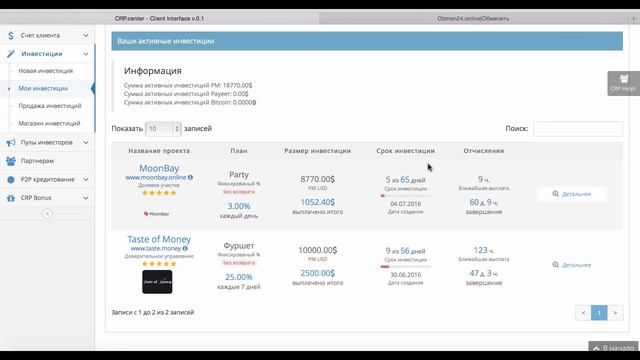 CRP center - первая и единственная платформа в сети, созданная инвесторами для инвесторов. CRP CENTR - эта уникальная площадка инвестирования проектов, где можно получать доход сразу с нескольких проектов. Компания Официальная, с документами, создана профессиональными инвесторами для инвесторов. Подходит как для опытных, так и для начинающих инвесторов. Инвестиции от 1-5$ с гарантированным доходом всем: и на пассиве, и в партнерке Страхование всех депозитов участников Скайп: zus888 Регистрация и вся иформация в сайте: https://crp.center/main/?p=pa113743387