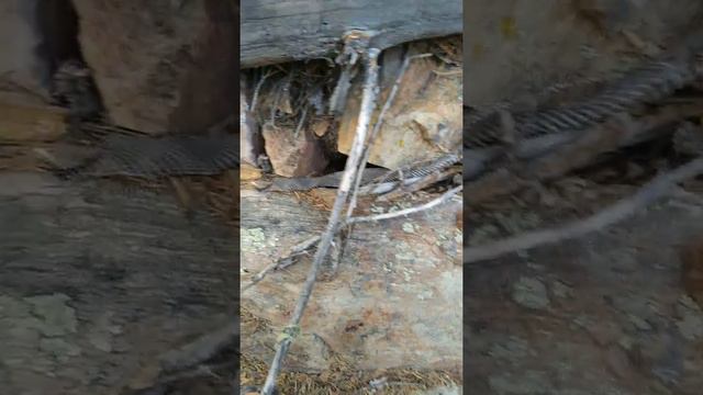Поднялись на скалу и обнаружили лежку медведя и сброшенную кожу змеи.