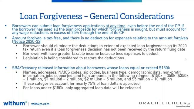 While the SBA continues to issue guidance relating to PPP loans, many questions remain around the PPP loan forgiveness process and the rules governing headcount and wage reductions. Presented by Withum’s Daniel Mayo, National Lead, Federal Tax Policy and Anthony Rainone, Esq., Member of Brach Eichler’s Labor and Employment Practice, this webinar will provide guidance on the PPP loan forgiveness process and how you can prepare your healthcare organization for maximum loan forgiveness.